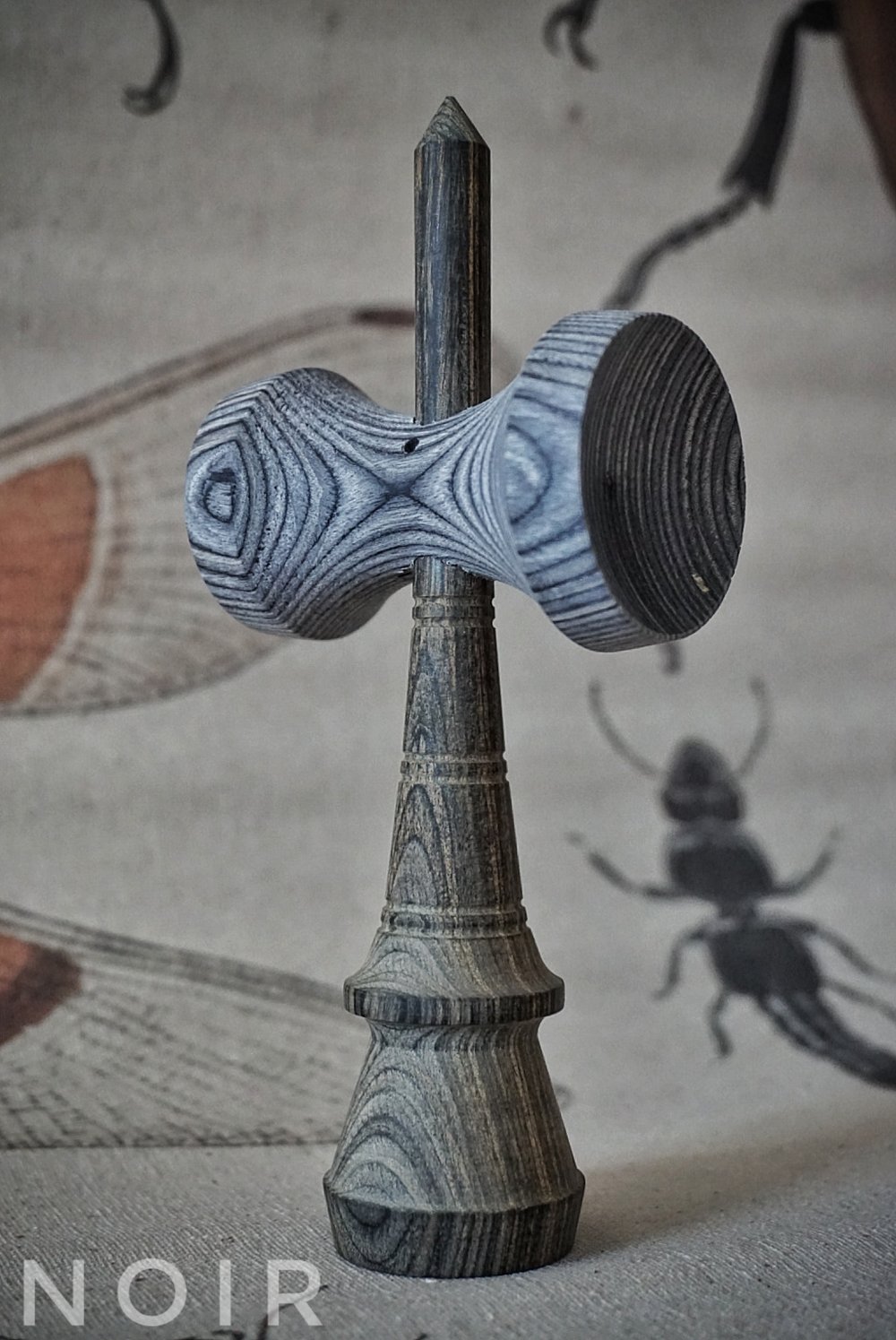 The Noir ("/Nwär/") is one of three kendamas in our Gunslinger Series, featuring a unique charcoal/charcoal color scheme. The Noir has an enhanced weighting profile designed to promote increased swing weight for faster juggles and gunslingers. Crisp sounding and durable, each of the Gunslinger Series kendamas is ready to take your game to new heights. Each ken is finished in our facility by hand, and includes the following: